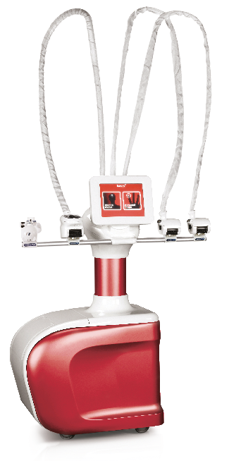 …ist mit einer innovativen, patentierten Technologie ausgestattet, die unabhängig angetriebene, roboderm-patentierte Rollen mit LED-Licht-Leistung und Laserenergie kombiniert.