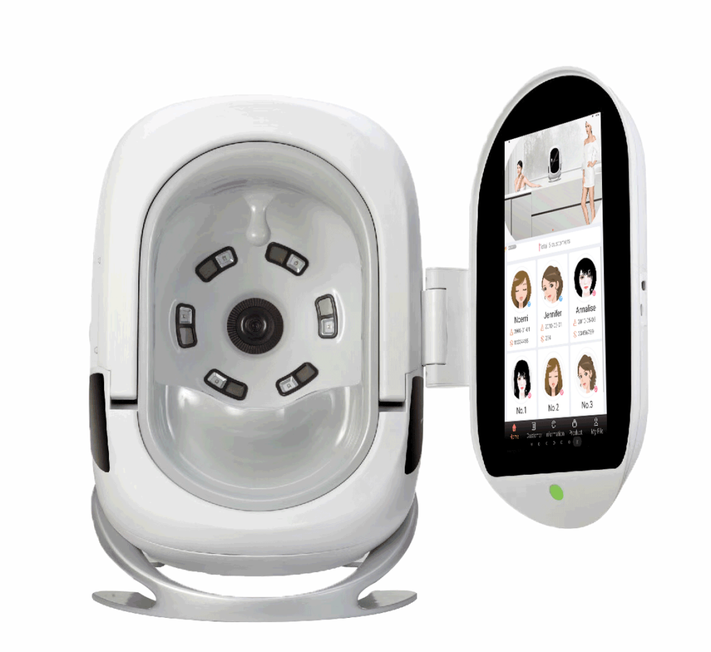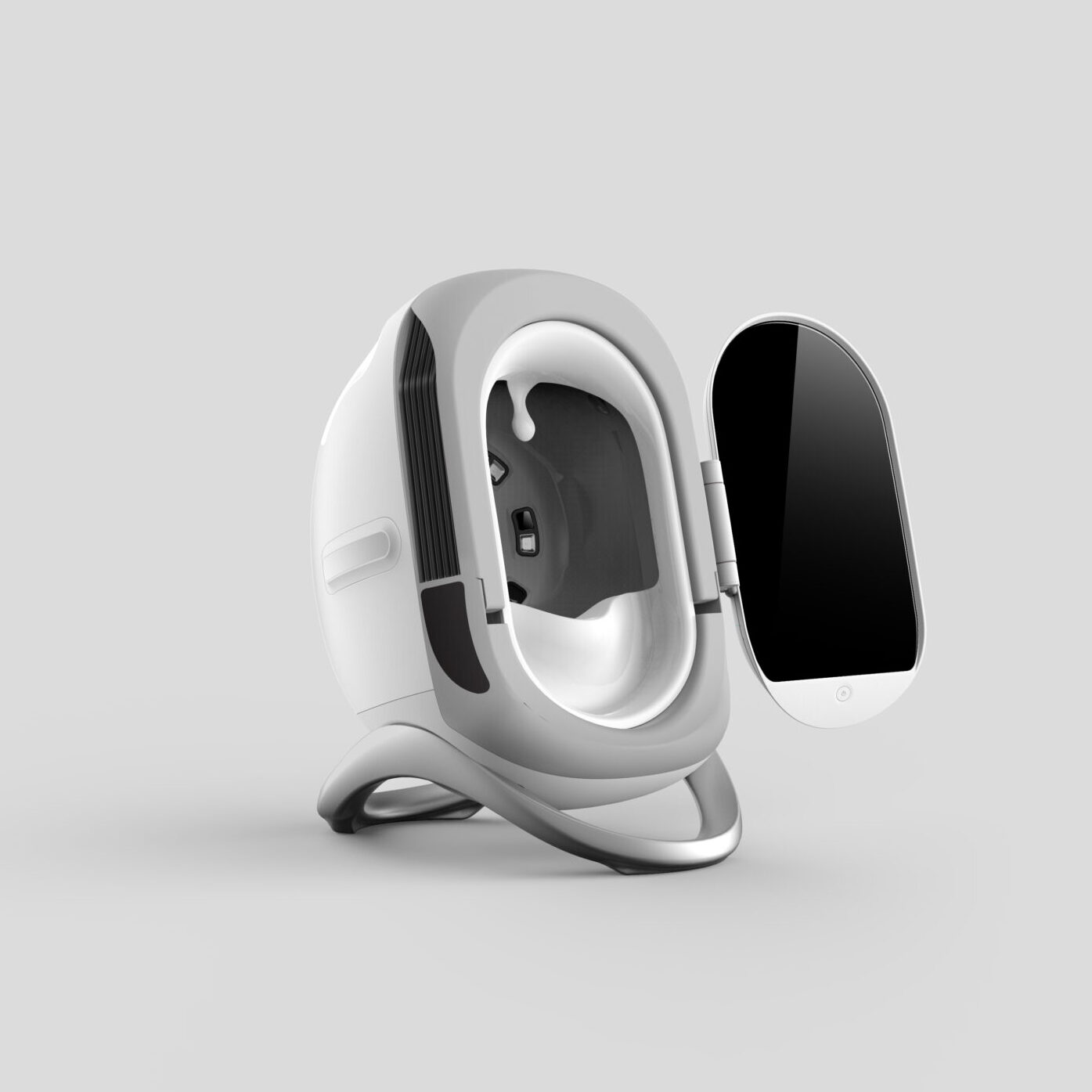 misst und analysiert die Dermis und Epidermis Schichten der Haut mit einer klinischen Genauigkeit. Beim Start einer Analyse wird das Gesicht zunächst mit einem RGB Licht, dann mit einem polarisierendem Licht und zuletzt mit einem UV Licht bestrahlt und mit 20 Megapixel fotografiert.