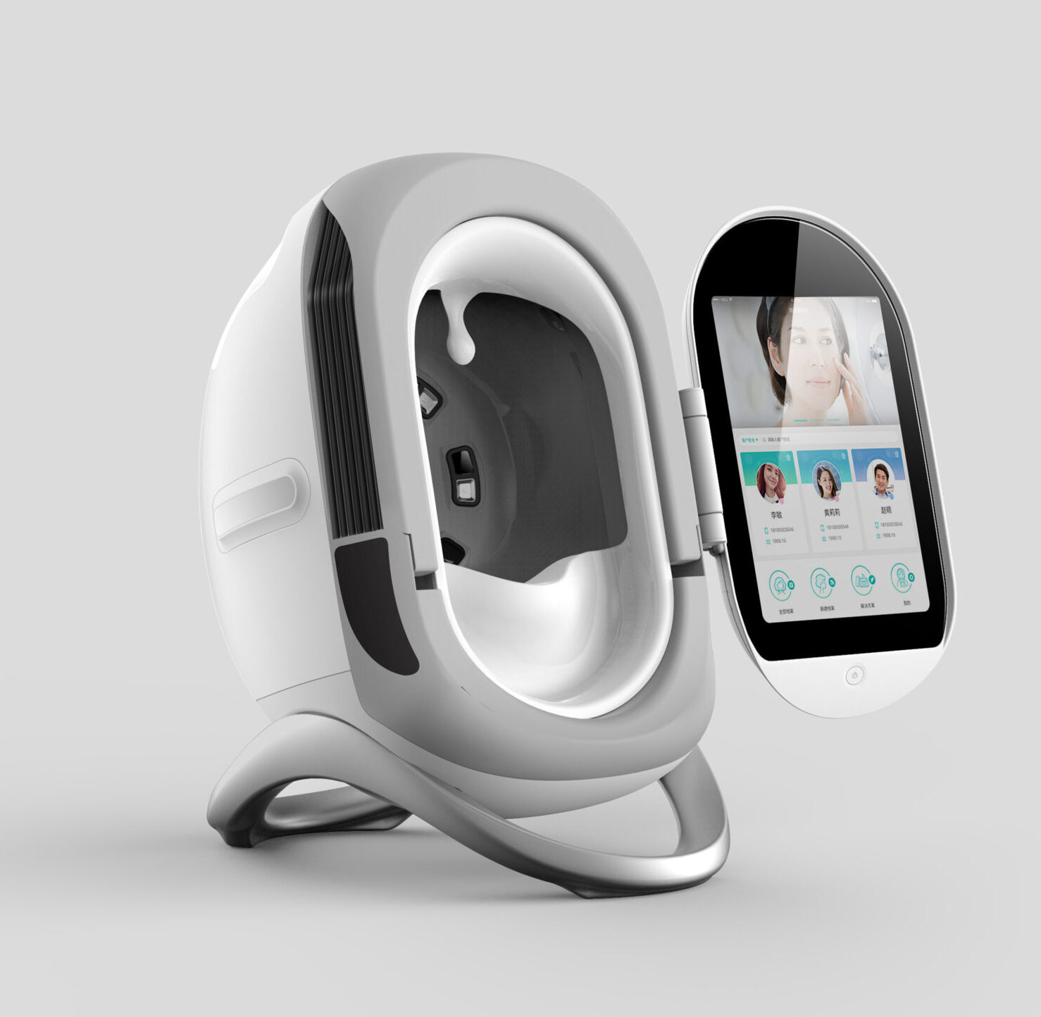 Anschließend ist die künstliche Intelligenz des Skin Analyzers fähig die gesammelten Daten zu analysieren und auf dem 15,6 Zoll Farbbildschirm individuell über die Situation der Haut zu berichten.